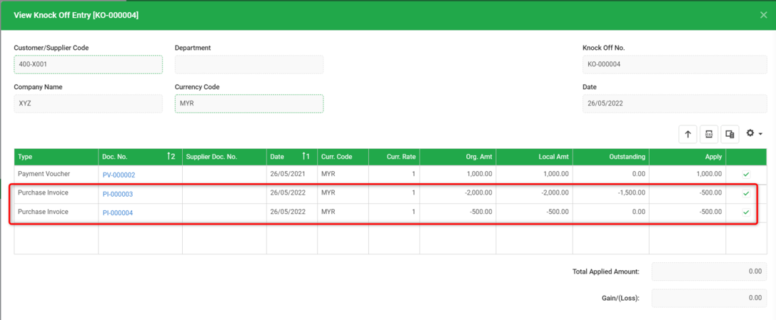 Or PV knock off amount does not match with the Purchase Invoice knock off amount.