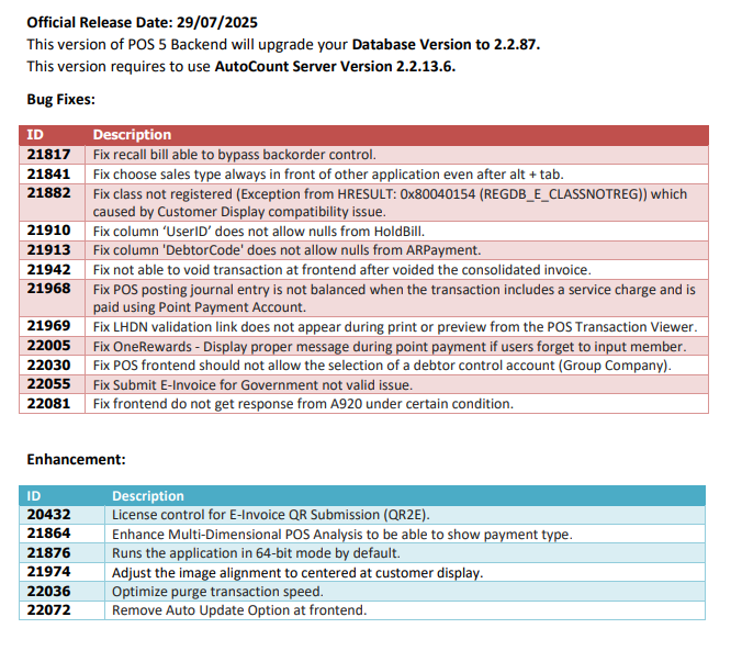 AutoCount POS Release Note 5.2.9.23 Official Release Date: 29/07/2025