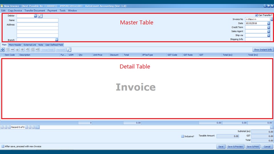 Automatically creates missing Debtors, Items, Sales Agents, and Purchase Agents during import.