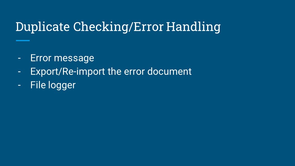 Provides error messages with export and re-import capabilities for corrections.